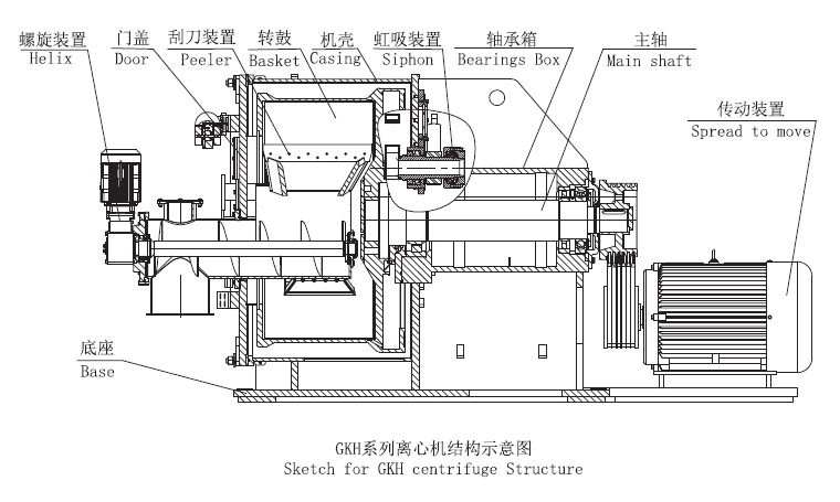 主電機(jī)帶動(dòng)套裝的內(nèi)外轉(zhuǎn)鼓全速旋轉(zhuǎn),物料由進(jìn)料管引入轉(zhuǎn)鼓,在離心力作用下,液相物穿過濾布和內(nèi)轉(zhuǎn)鼓壁濾孔排出內(nèi)轉(zhuǎn)鼓,匯集到內(nèi)外轉(zhuǎn)鼓間的間隙內(nèi),穿過到虹吸室的通孔進(jìn)入虹吸室,再由虹吸裝置抽走排出機(jī)外。固相物截留在內(nèi)轉(zhuǎn)鼓形成環(huán)形濾餅層。進(jìn)料達(dá)到預(yù)定容積后停止進(jìn)料,進(jìn)一步分離,此時(shí)可進(jìn)行洗滌。洗滌、分離結(jié)束,刮刀自動(dòng)旋轉(zhuǎn),將固相物刮下經(jīng)輸料螺旋排出機(jī)外,然后自動(dòng)洗網(wǎng),開始下一個(gè)循環(huán)。